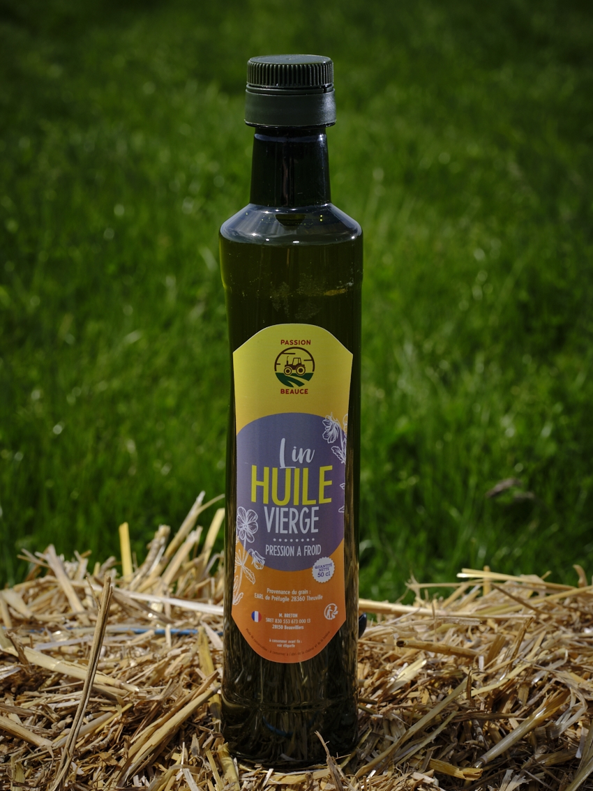 Lin pressé à froid issus d'une ferme voisine située à Theuville (28360)